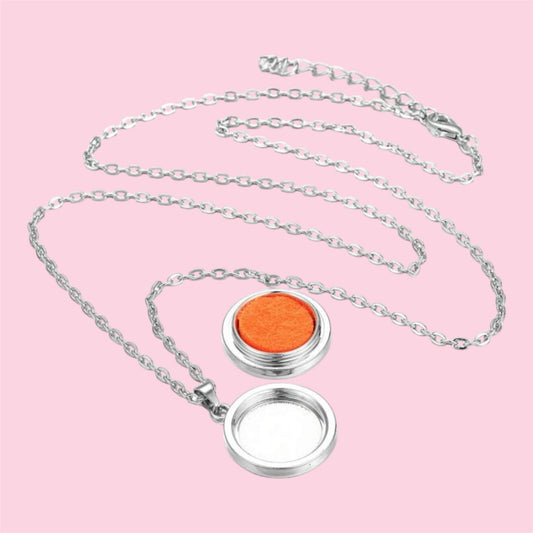 Pendant aromatherapy diffuser necklace with spare felt pads.